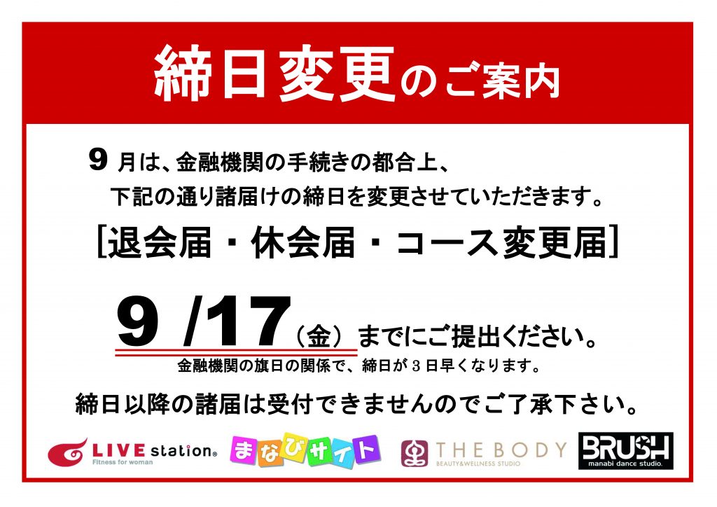 [入江店]9月度 諸届けの締め日変更のお知らせ